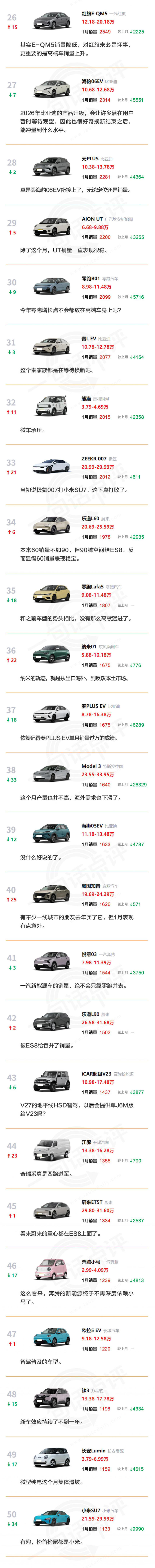 商场抽象:若是说,1 月纯电动车销量榜有什么出乎料思,在我看来有以下三点。