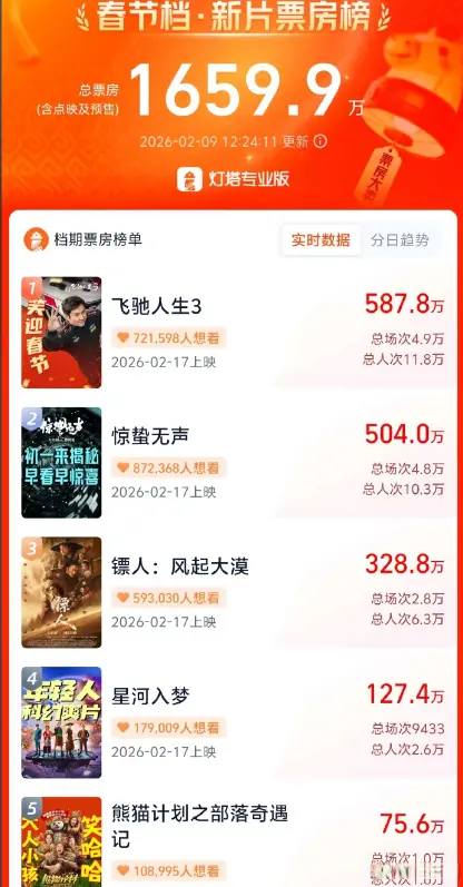 - 幸运5星彩 春节档票房过24亿一半被一部电影吃掉不雅众只认“熟脸”不认新形貌2026-02-27