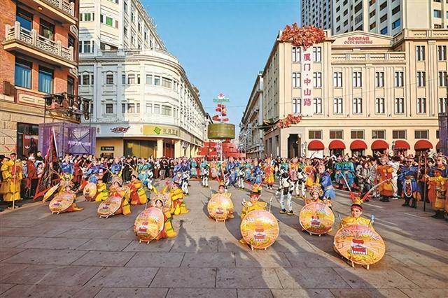 一系列主题文旅举止燃动鹭岛新春,带来多元潮玩体验。图为中山路上举行的特点举止招引市民搭客安身不雅看。(想明区 供图)