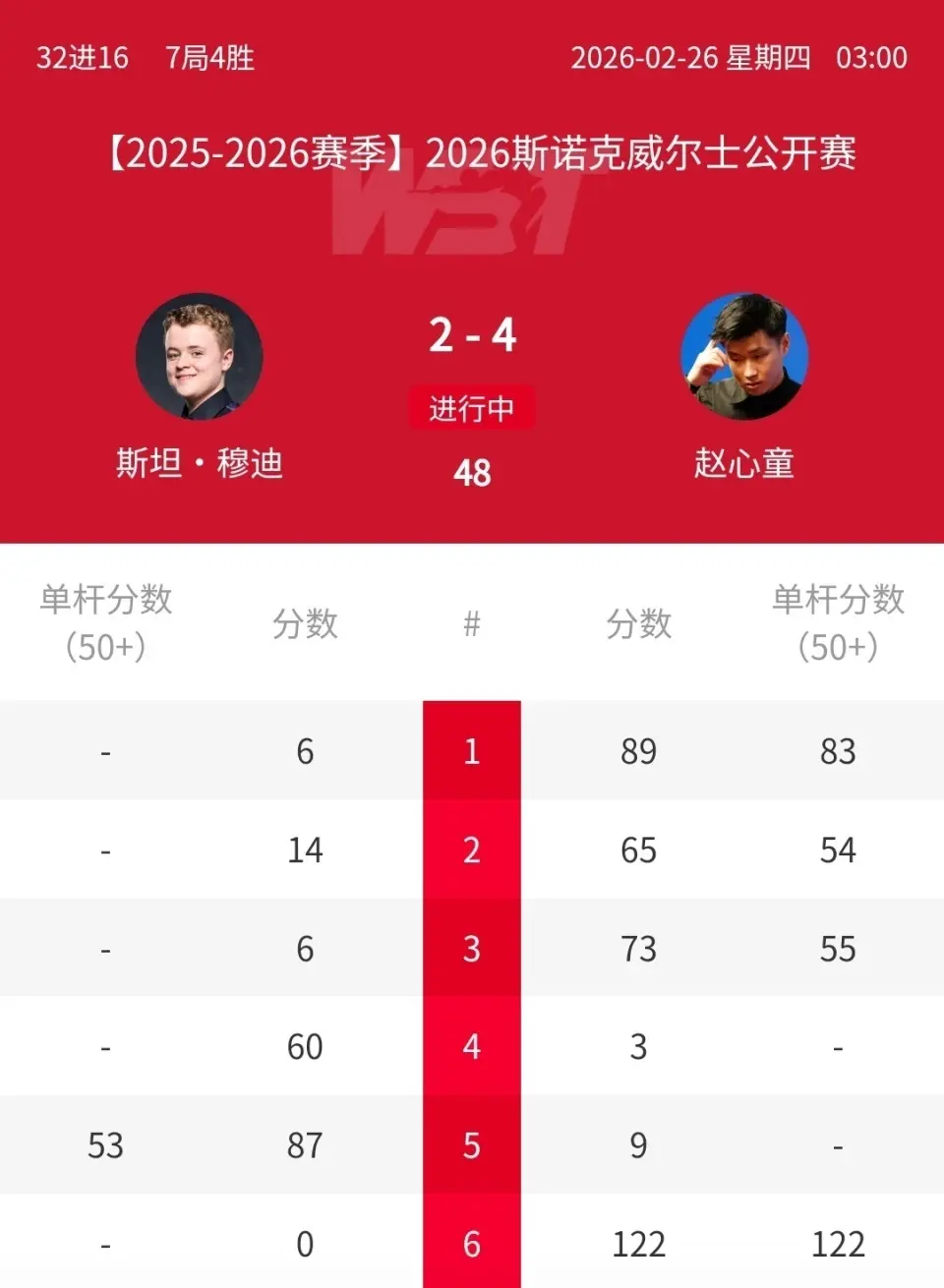 第二轮,赵心童迎战“最强小孩”斯坦-穆迪,后者在以4-0横扫吉米-罗伯逊,展示出了格外好好的实力和竞技景色。