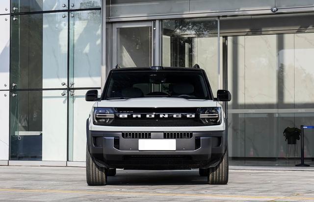 咱们当先来看新车的外不雅测度打算方面,福特智趣烈马的车头测度打算延续了烈马家眷标记性的“方盒子”轮廓,但通过新能源化的前脸讲话赋予其更浓烈的科技感与辨识度。前脸罗致禁闭式格栅布局,中央镶嵌可点亮的“BRONCO”字母符号,与两侧圆形数字化LED大灯无间,变成横跨车头的动态光带,夜间点亮时犹如烈马奔腾的光影流动,兼具安全性与视觉冲击力。前保障杠罗致双层结构化测度打算,表层为蜂窝状散热格栅,保障散热效果